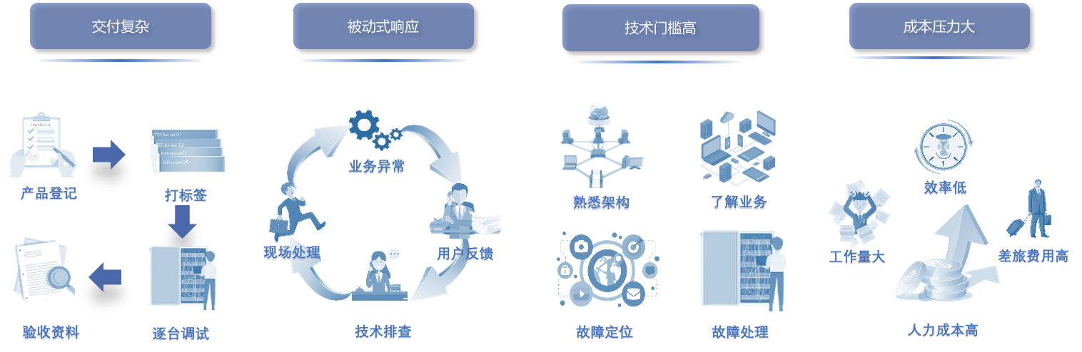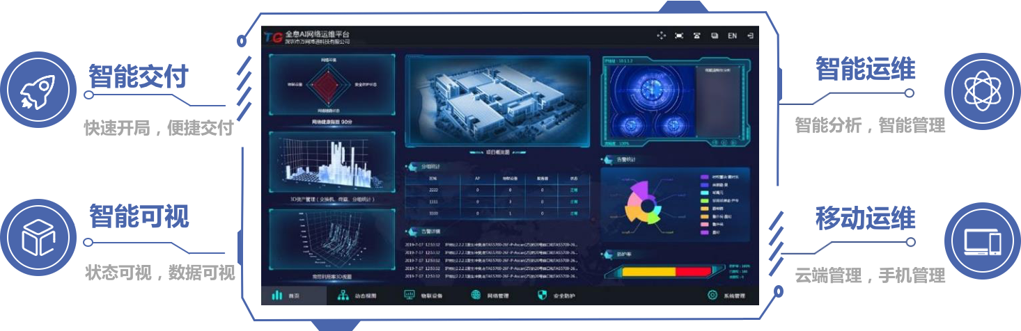 并结合云管平台与手机小程序,给予了智能交付,智能可视,智能运维,移动运维四大核心功能。